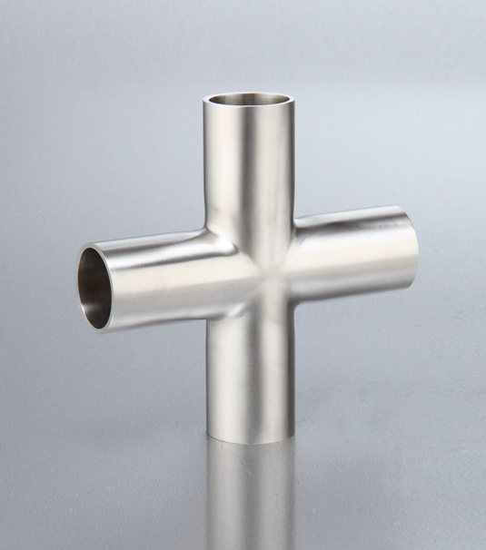SS cross tee connects four pipes, enabling multi-directional fluid flow management.